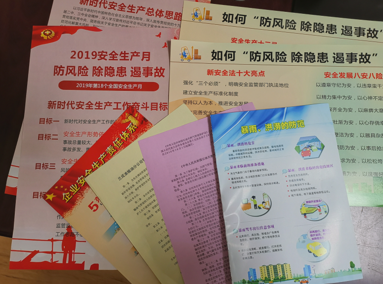 此次宣传活动主要以张贴宣传海报、发放宣传资料及宣传品等形式开展,宣传内容主要包括新时代安全生产工作奋斗目标、2019年安全生产工作重点、企业安全生产责任体系、输油管线保护、暴雨、洪涝、地震、供电用电安全及电力设施保护等相关安全知识。