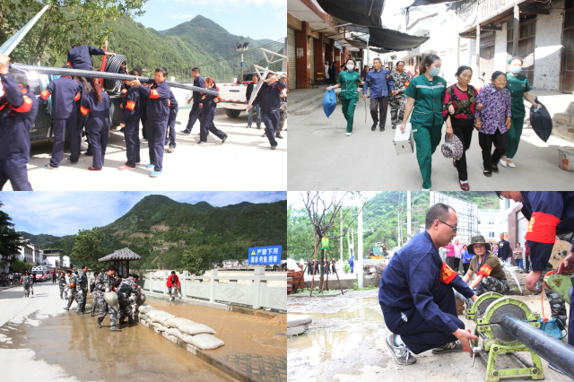 “报告指挥长,羊木河洪水陡涨,洪水已超过警戒位,场镇可能进水,请您指示!”雨情就是命令,灾情就是责任!指挥长接到防汛险情后,立即通知相关部门紧急召开防汛会商会议,分析和研判汛情,安排部署当前的防汛应急抢险工作。公安、消防、医疗、卫生、交通等应急抢险队联动出击,迅速奔赴学校,转移学生、紧急疏散场镇居民,细心搜救被困群众,积极救助伤员,认真消毒防疫。填装沙袋堵截洪水,抢修被破坏的水电和通信设施,搭建临时帐篷,发放救灾物质,耐心作好群众思想稳定工作……全体队员听从指挥、服从命令、配合默契,“险情”被一个个排除,“灾害”被一个个战胜,人民的生命和财产得到保障,防汛抢险演练取得圆满成功。