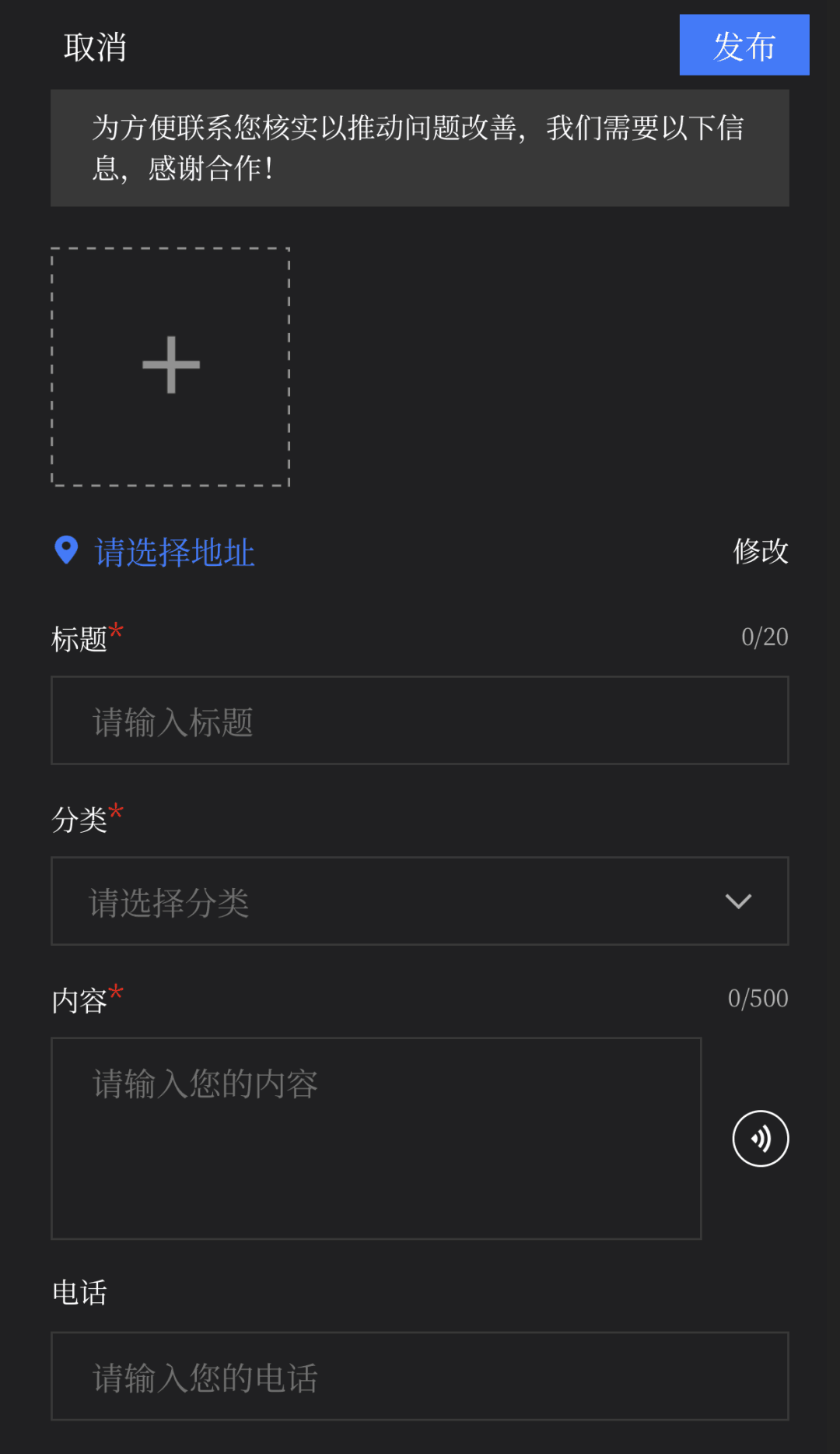 上传相关图片或视频,填写地址+事实详情+联系电话即可,分类请选择“劳动纠纷”。