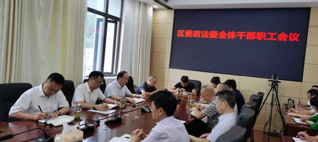 8月10日,区委常委、政法委书记仲满成组织召开区委政法委机关全体干部职工会议,总结分析今年以来全区政法工作推进情况,安排部署下一步工作。