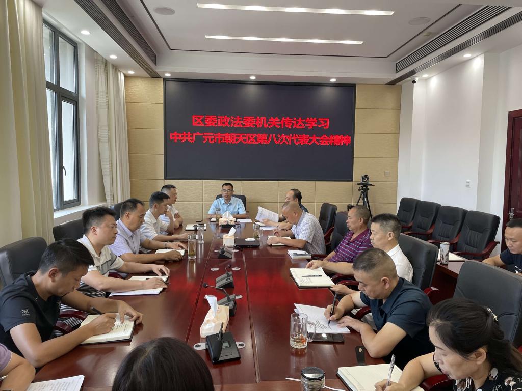 8月24日,区委常委、政法委书记仲满成组织召开区委政法委机关干部职工会议,传达学习中共广元市朝天区第八次代表大会、区委八届一次全会精神。