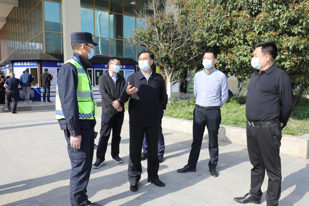 在京昆高速公路中子服务区,张骏与现场工作人员沟通交流,实地察看测体温、戴口罩、扫码通行等防控措施落实情况,全流程检查进出站防控工作。张骏指出,高速出入口是外防输入的关键一环,必须要牢固树立底线思维,慎终如始、毫不松懈抓好疫情防控各项工作扎实筑牢“外防输入”第一道防线,坚决守好四川和广元北大门。他强调,要切实做好扫码测温、佩戴口罩、检查登记等工作,提醒旅客做好个人防护,坚决做到“不漏一人”,守好“外防输入”的关键阵地。要强化信息宣传,切实增强广大司乘人员和服务区工作人员防护意识。