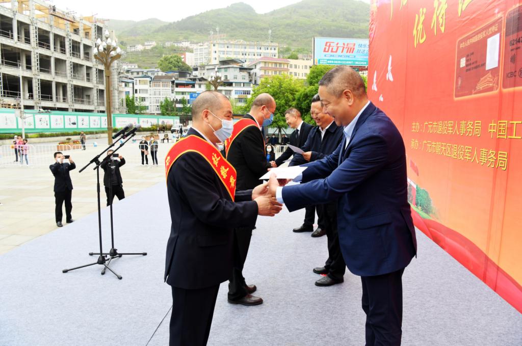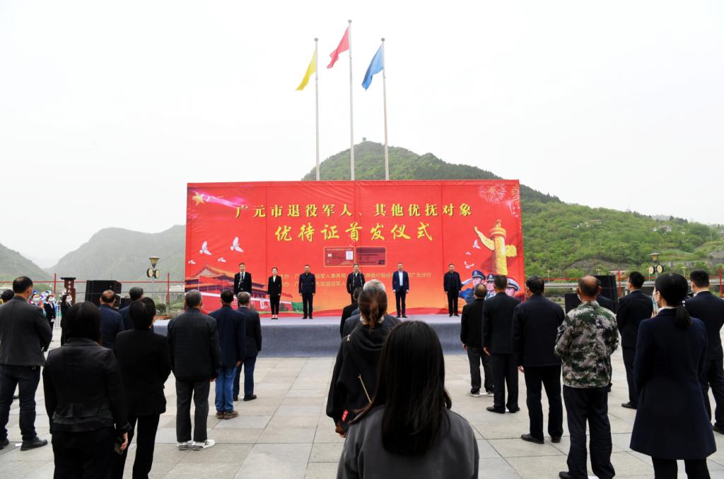 4月12日上午,广元市退役军人、其他优抚对象优待证首发仪式在朝天区时代广场举行,全市首张工商银行制作的优待证正式亮相,这也标志着广元市退役军人、其他优抚对象优待证发放工作正式开始。