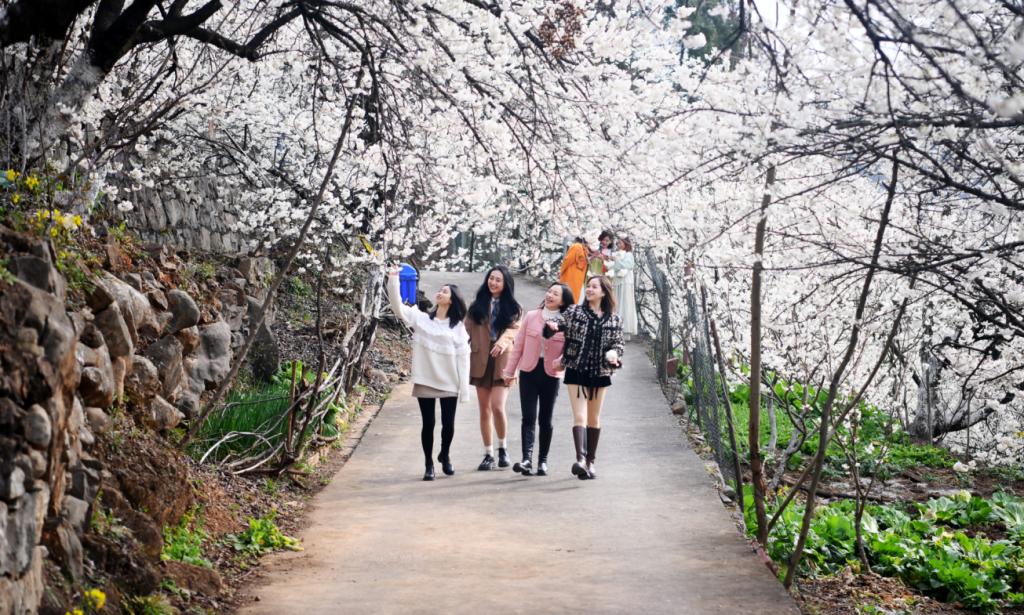 樱花盛开,游客络绎不绝。“目前是赏花的好时节,樱花经济给我们带来了不菲的收入。”张泽勇算了一笔账,仅樱花季和樱桃采摘季,他就能收入7万元左右。