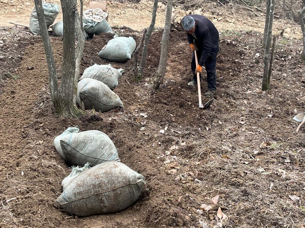 整土、播菌种、覆土……3月29日,在朝天区两河口镇大尖山笋用竹产业基地内,10多名当地群众正在忙着种植赤松茸,大家各司其职,一片繁忙的劳作景象。