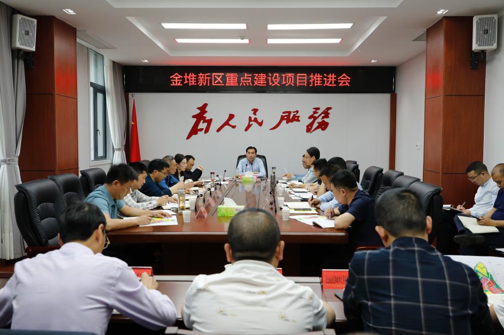 会议听取了金堆新区重点项目规划方案调整、金堆新区开发建设场平(二期)工程、基础设施推进情况的汇报。