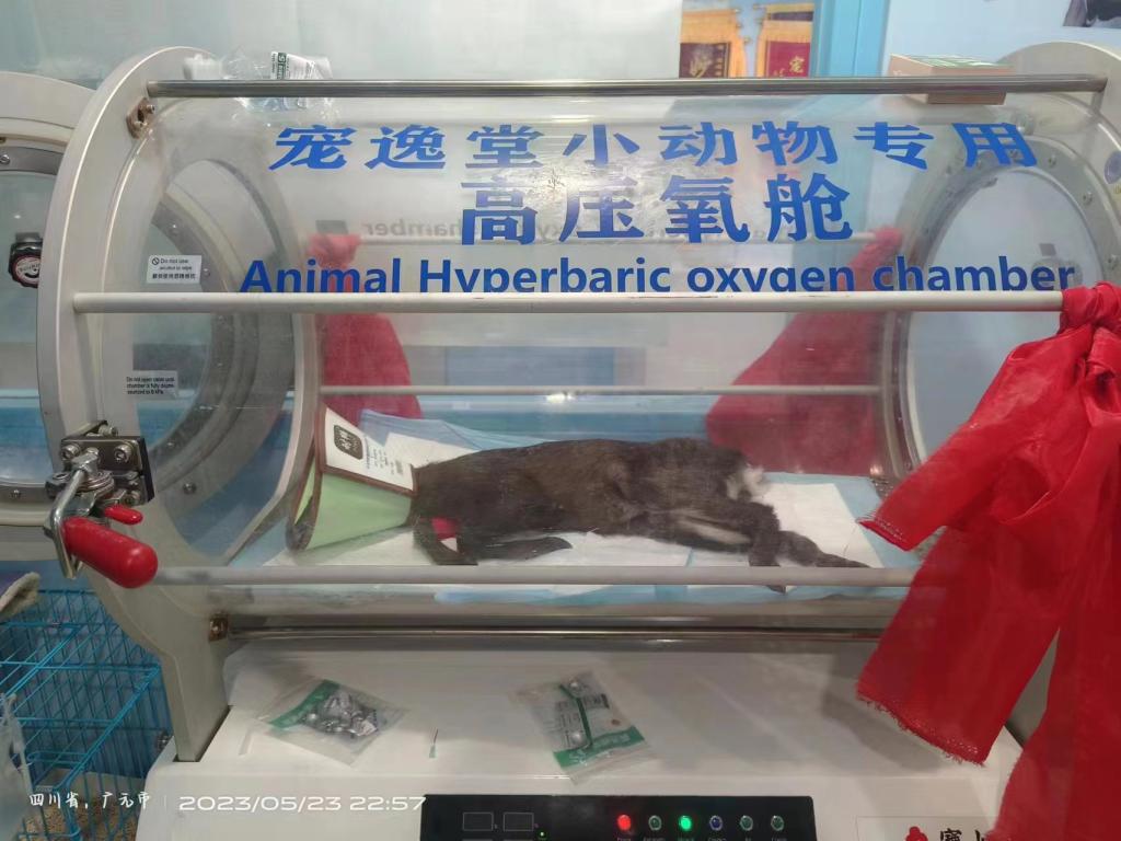 对毛冠鹿进行高压氧舱治疗