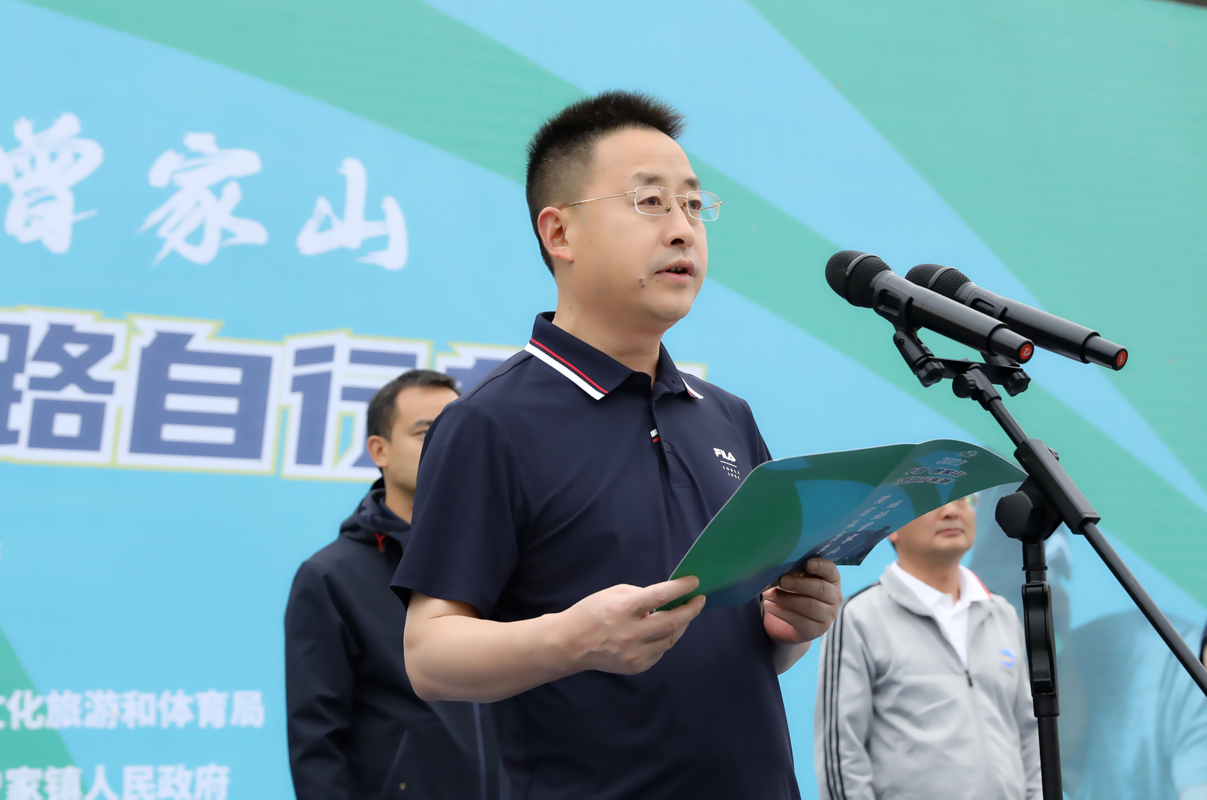 市委常委、宣传部部长袁敏宣布开赛,中国自行车运动协会副秘书长熊鑫、区委书记余飞宇致辞,市体育局党组书记罗红明出席,区委副书记、区长张骏主持。