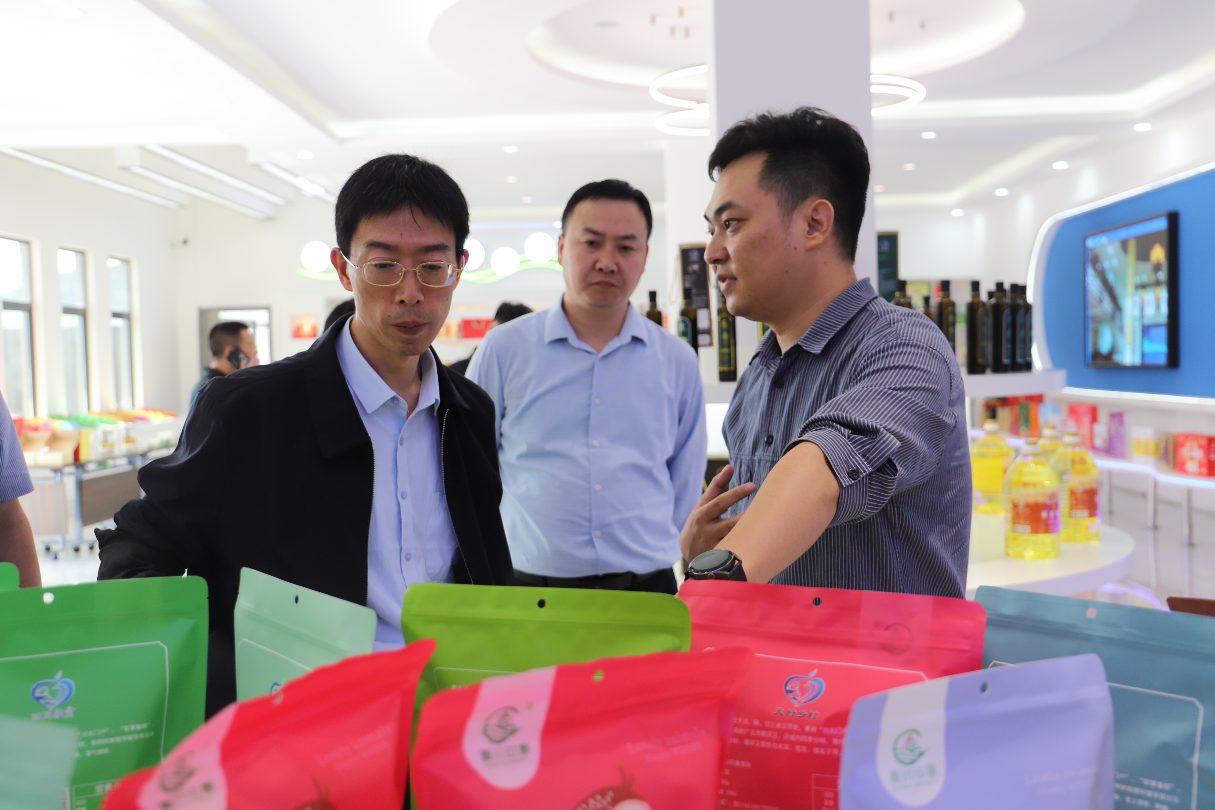 在棒仁食品、秦川印象、宣河乡核桃专业合作社,罗怀熙同企业、合作社负责人面对面交流,详细了解企业、合作社经营状况,并对农业产业强镇涉及项目在规划和建设存在的困难,进行了深入了解。在朝天核桃现代林业示范区,罗怀熙听取了农业产业强镇项目核桃产业基地建设情况。