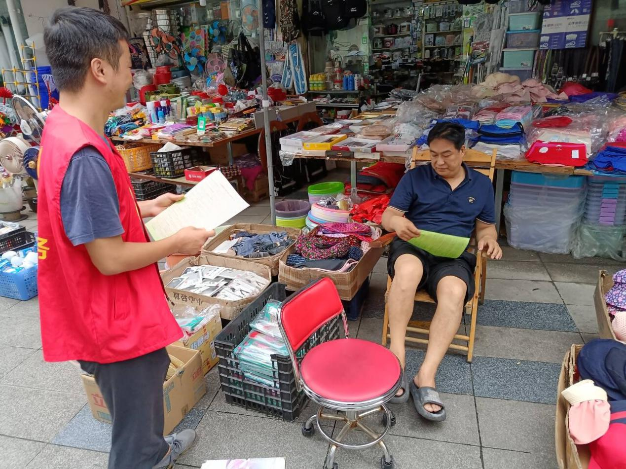 区委组织部干部在商户宣传文明知识