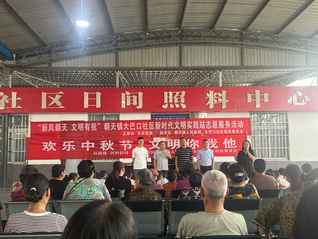 在传统佳节中秋节到来之际,朝天区组织130余个包联共建单位认真开展“迎中秋·文明知识宣传”红色星期六志愿服务活动,各包联共建单位深入社区(小区)、各包联点位以敲门入户宣传、文明知识坝坝会、文明行为劝导、环境卫生整治、庆祝中秋活动等方式,引导群众传承弘扬中华民族优秀传统文化,建设美好幸福生活,切实提升文明素养、进一步巩固群众性精神文明建设成果。