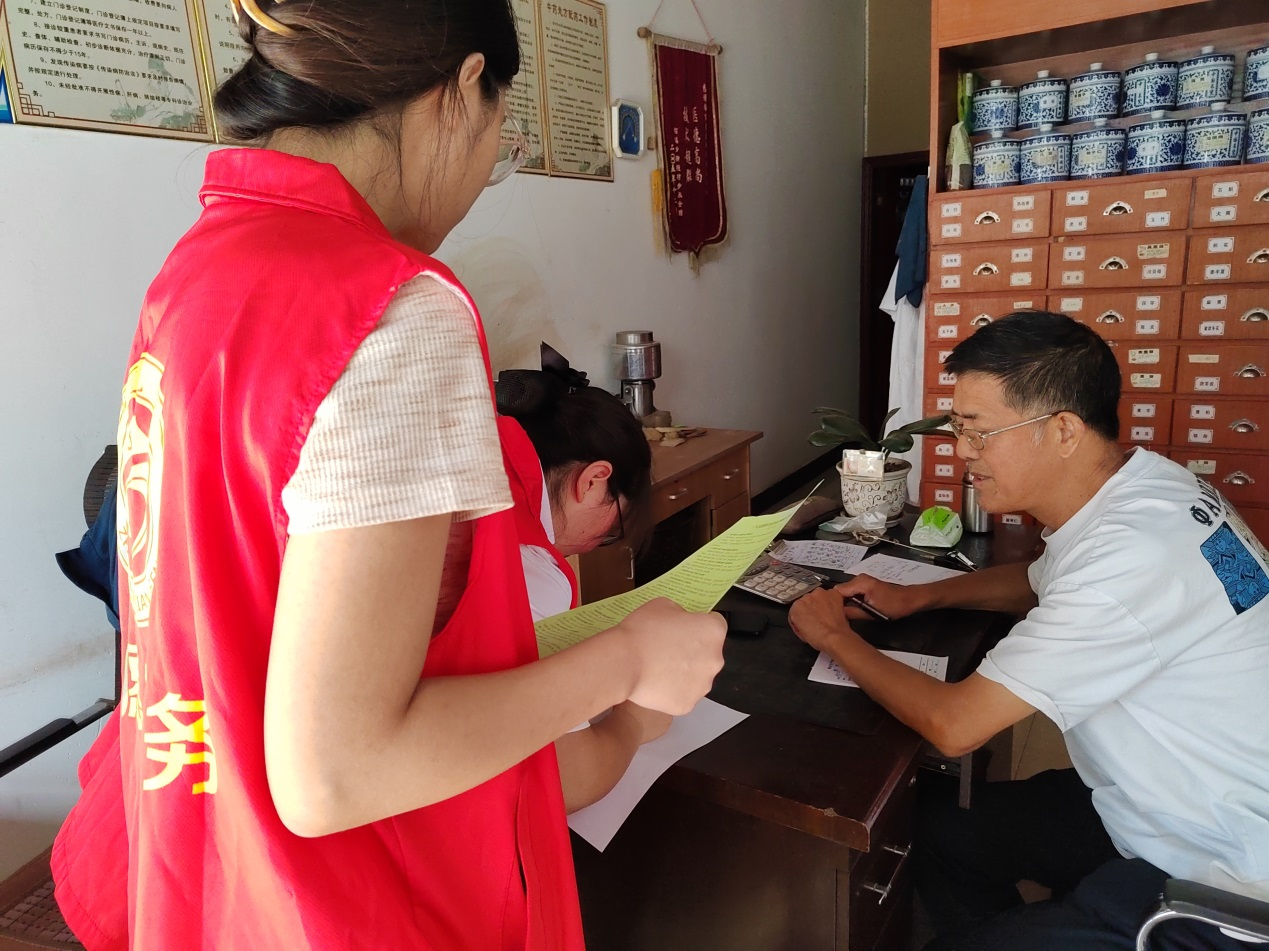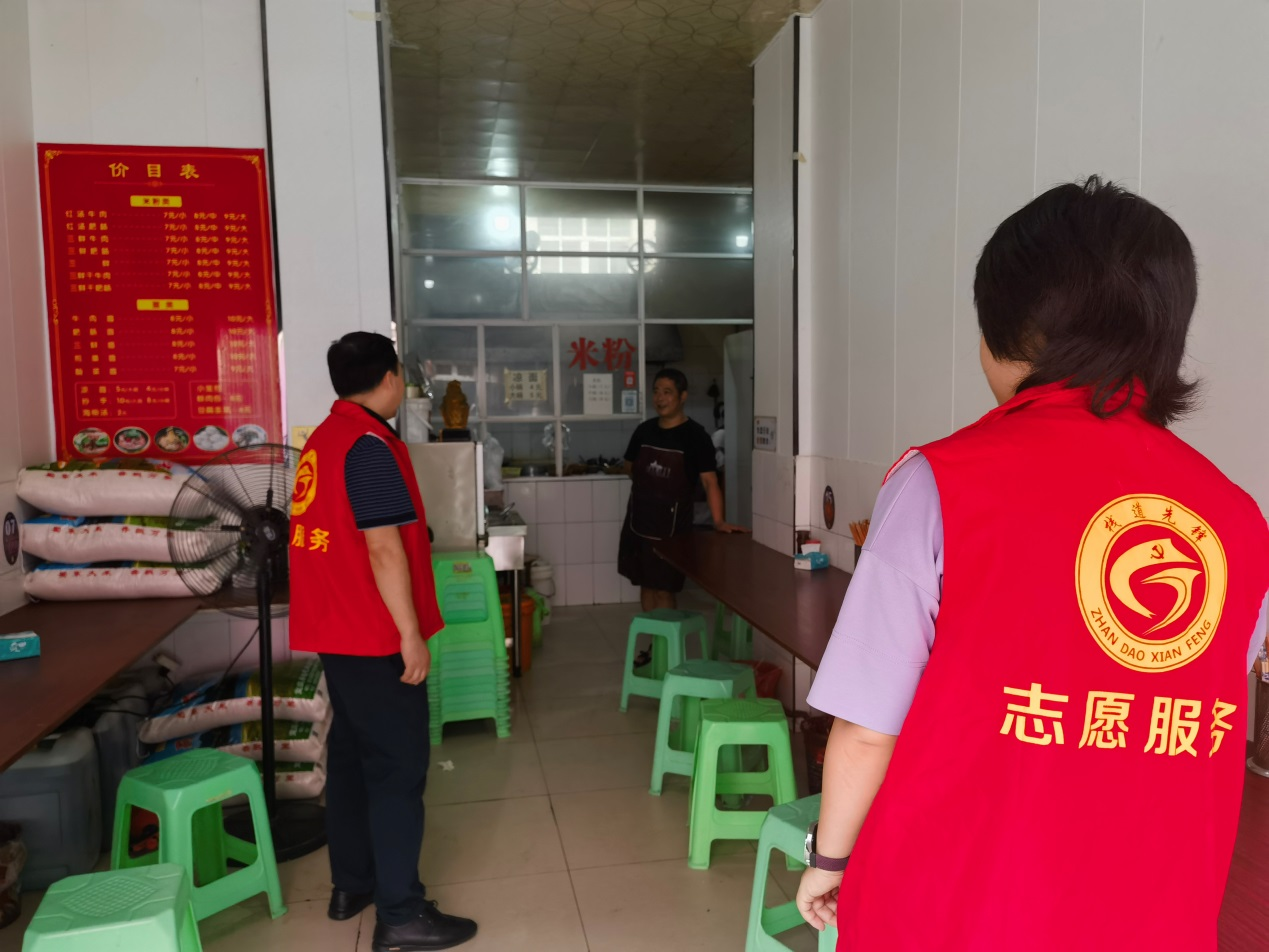 区行政审批局志愿者入商户宣传文明知识