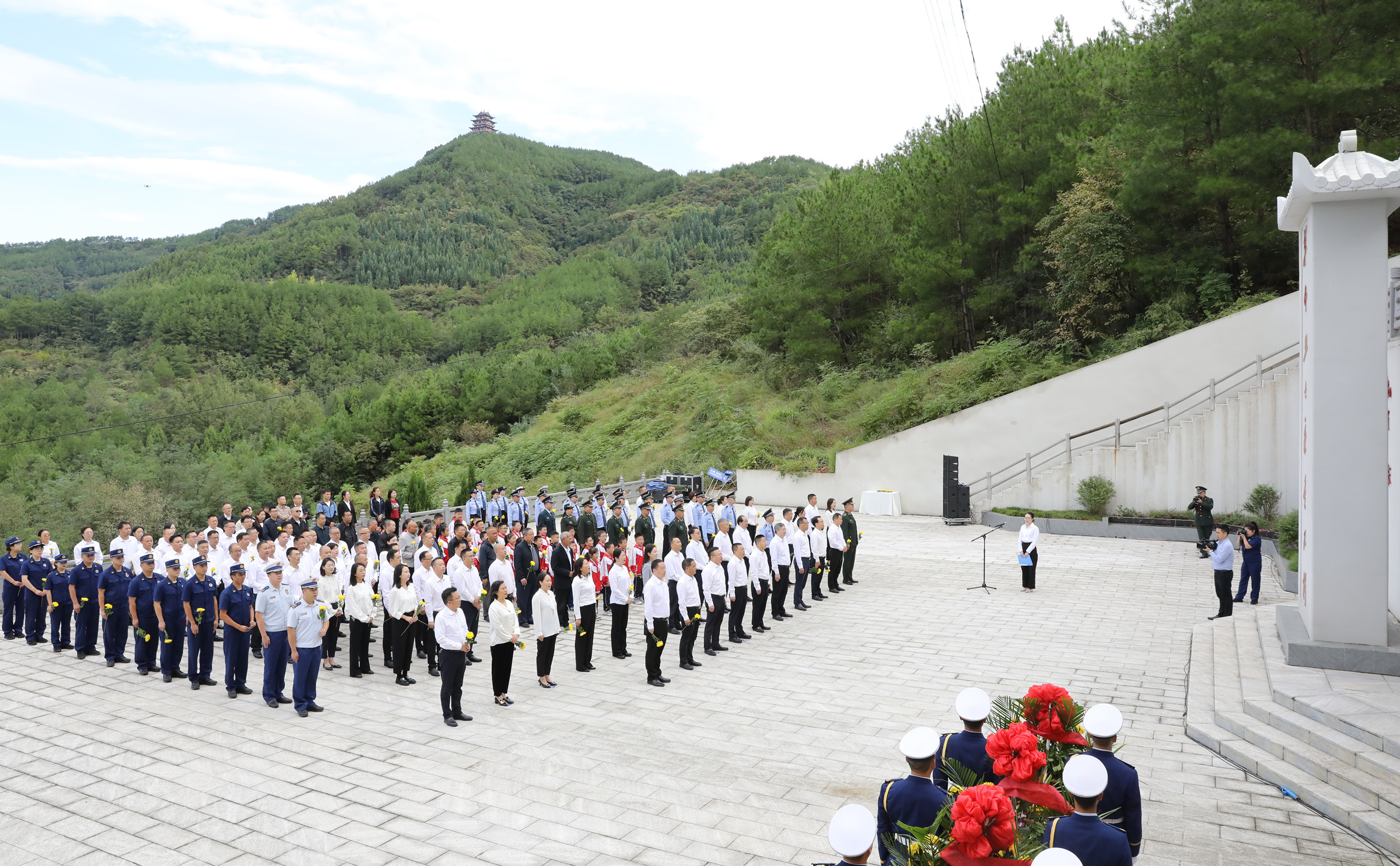 区委、区人大常委会、区政府、区政协、区人武部、曾家山旅游度假区领导,区级各民主党派、工商联、无党派人士代表,区级相关部门(单位)主要负责人、公安干警、驻朝部队官兵、消防救援人员和少先队员代表,烈士遗属、退伍老战士、社会各界群众代表参加。