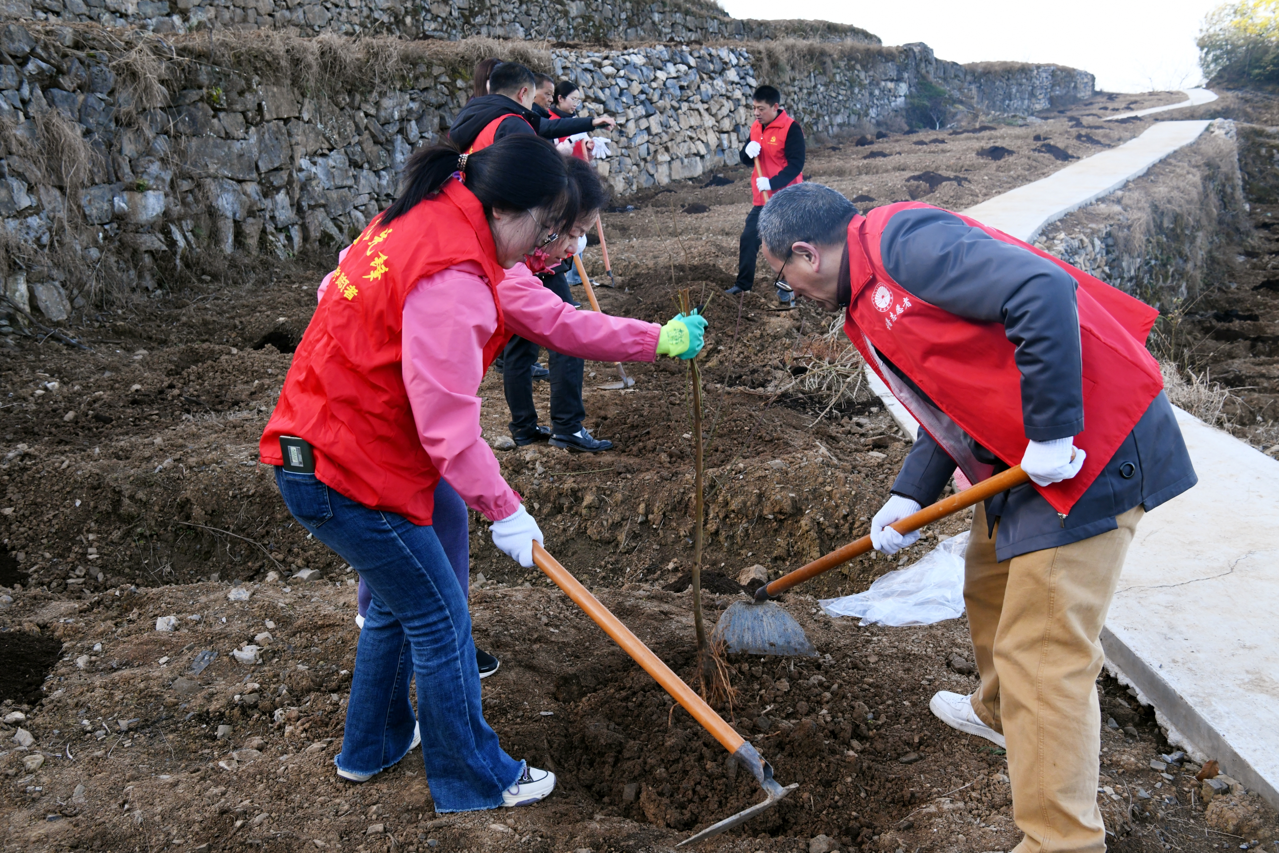 “覆土深度在桃树苗根茎的第一个侧根3—5厘米处比较合适,树苗根部周围的土垒成四周高、中间低的盘子状,定植后浇足定根水,并用地膜覆盖树盘,四周用土压实……”11月28日一大早,朝天区沙河镇唐家村冬桃产业园就开始热闹起来,广元市科协、市直机关工委、市委老干部局、朝天区沙河镇的40多名党员志愿者在沙河镇高级农艺师赵绪斌的指导下,忙碌地进行栽植冬桃树苗。