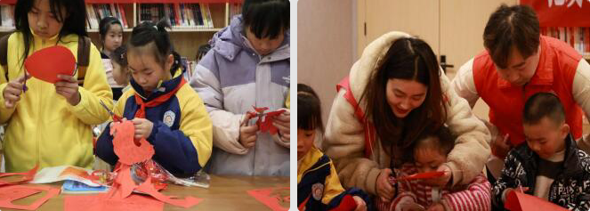 在志愿者们的指导下,孩子们纷纷参与“剪窗花”。一张张彩纸在小朋友们手中变成一幅幅精美的窗花,让孩子们感受了浓浓的年味,激发了孩子们对传统文化的兴趣。