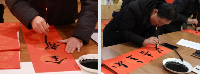 活动还邀请了区内知名书法爱好者现场挥毫泼墨,为小朋友及家人书写春联、福字,将美好的祝福融入笔墨之中,引导家长儿童在探寻传统非遗的独特魅力中增强文化自信、厚植家国情怀。孩子们拿着一幅幅充满喜气与吉祥的春联和福字,脸上洋溢着幸福的笑容,现场沉浸在欢乐祥和的节日氛围中。