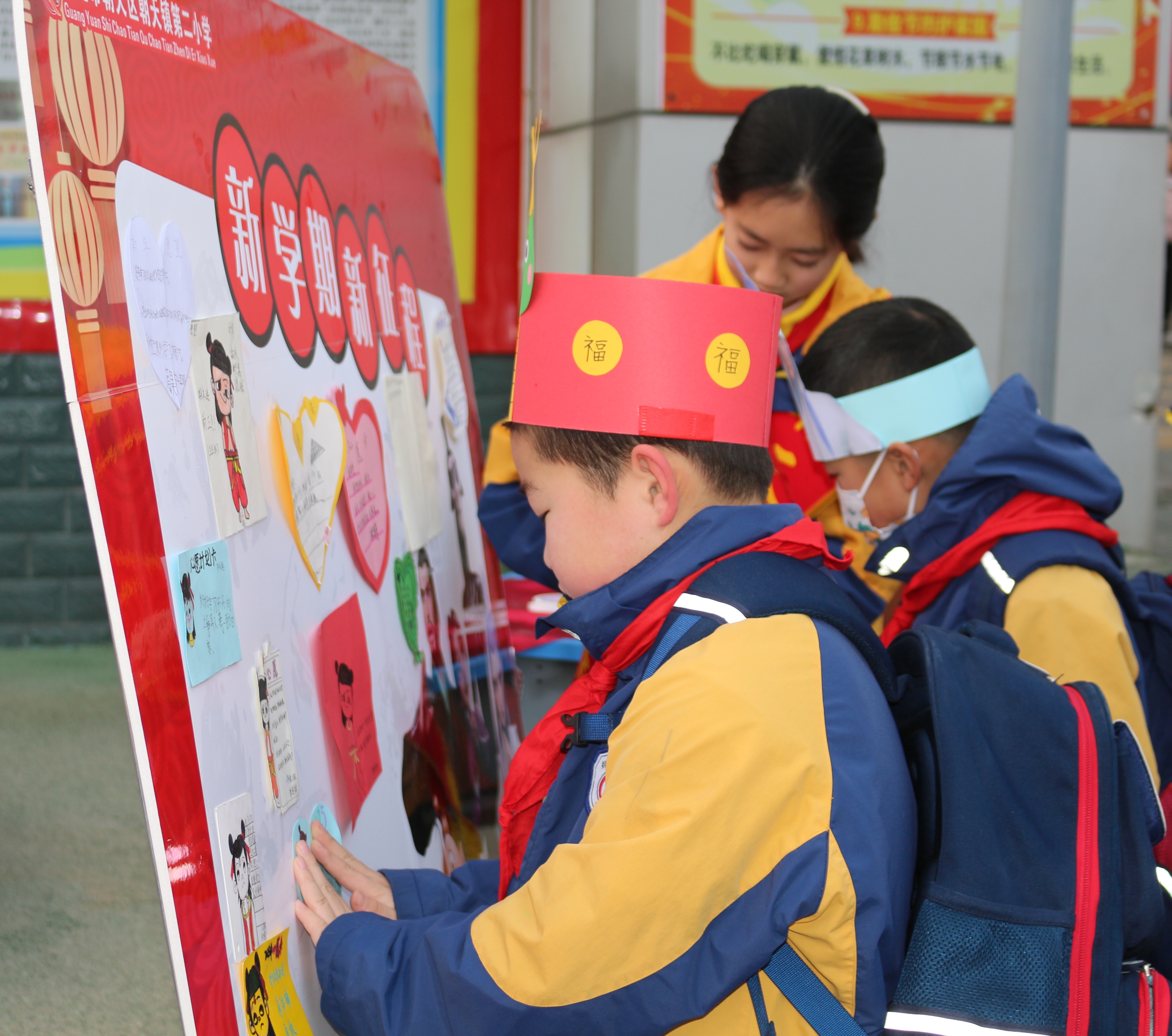 孩子在校园内的打卡点写下新学期愿望