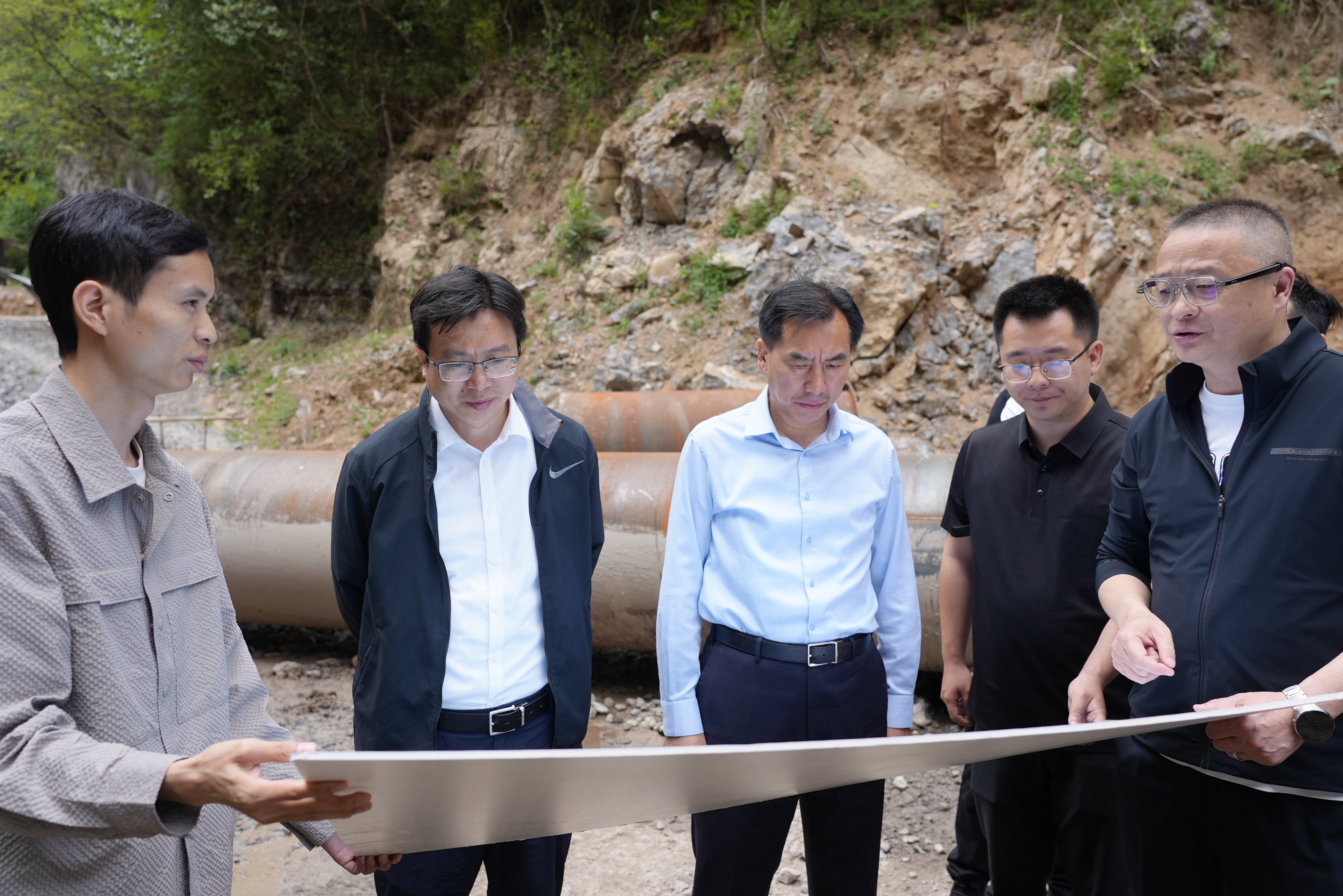 当天,张骏一行还调研了两河口镇黄柏村潜龙河地质塌陷治理工程项目情况。