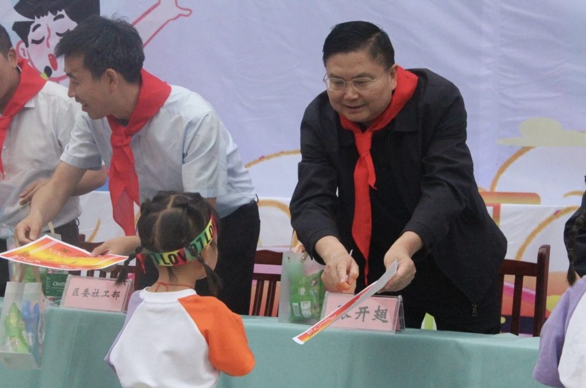 “六一”前夕,区四大班子领导及区级各部门、社会团体、爱心妈妈纷纷走入校园,为孩子们送上书包、文具、书籍、体育用品等节日礼物,与孩子们亲切交流互动,详细了解他们的学习、生活和身心健康状况,勉励他们树立远大理想,珍惜美好时光,勤奋学习知识,锻炼强健体魄,培养优良品德,努力成长为德智体美劳全面发展的社会主义建设者和接班人。