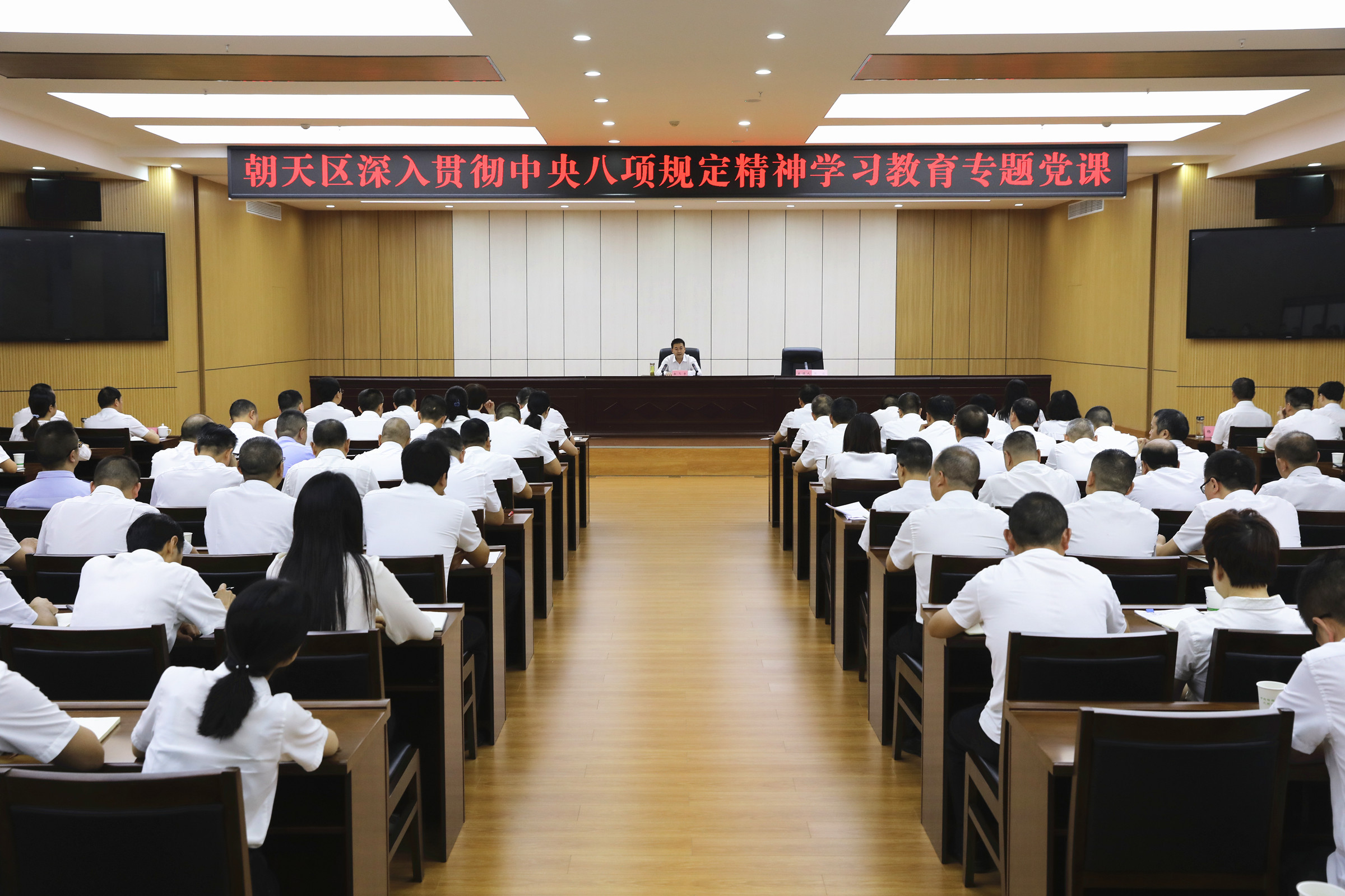 本网讯(王杰)7月3日,区委书记余飞宇向全区干部及部分党员代表讲深入贯彻中央八项规定精神学习教育专题党课,宣讲省委十二届七次全会精神。他强调,要深入贯彻中央八项规定精神,锲而不舍抓实党的作风建设,坚定不移全面从严治党,切实为现代化朝天建设提供坚强政治保障。