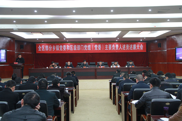本网讯(杨春恩)1月15日下午,我区召开乡镇和区级部门党组(党委)主要负责人述责述廉大会。区委书记蔡邦银出席会议并作重要讲话。区委常委、纪委书记李城主持会议。