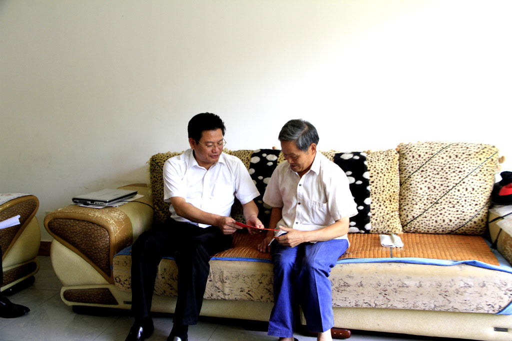 杨昌林是建国前老党员,将近90高龄的他精神依然矍铄。蔡邦银关切地询问老人身体和生活状况,与他一起畅谈朝天发展变化。蔡邦银说,朝天的发展离不开像你们一样的老党员长期以来的奉献,希望你一定保重好身体,继续发挥余热,为朝天经济社会跨越发展多提宝贵的意见和建议。