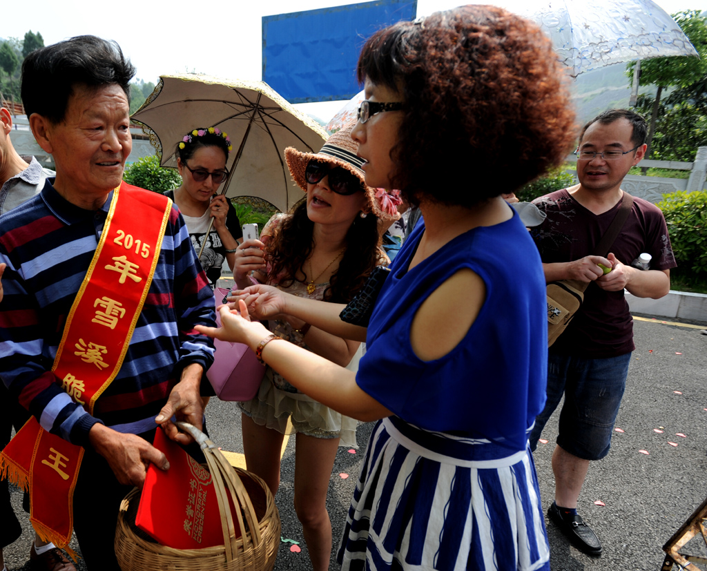 “我家种了10多亩、能产1万多斤,欢迎大家来采摘。”当天被评为“雪溪脆李王”的陈均方老人被很多游客围住询问,都希望到他家去采摘最好吃的李子。陈均方老人向记者介绍,雪溪脆李因阳光充足,土壤特殊,生长出的李子品质优、口感好,远近闻名。