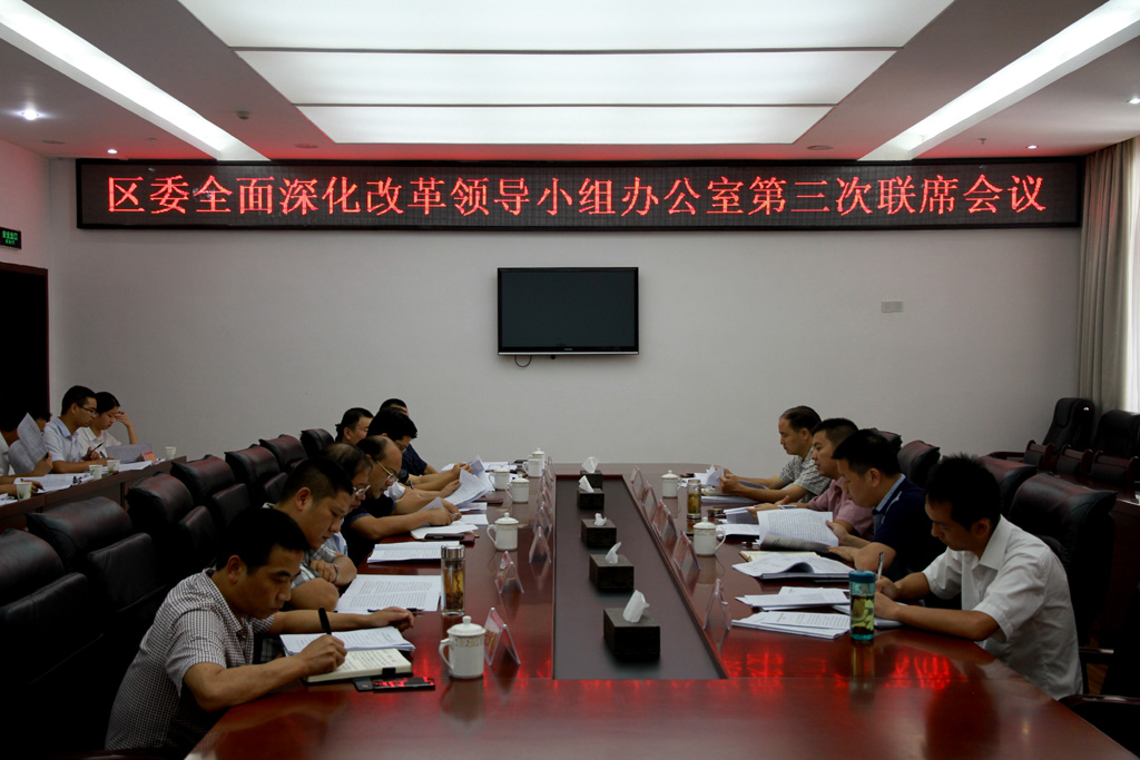 本网讯(杨春恩 曹婷婷)7月21日,区委副书记罗凌云主持召开区委全面深化改革领导小组办公室第三次联席会议,副区长甘兴礼参加会议。
