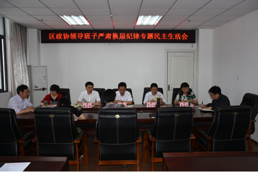 5月5日,区政协召开领导班子严肃换届纪律专题民主生活会。区政协主席张晓春主持会议,区政协班子成员参加会议。
