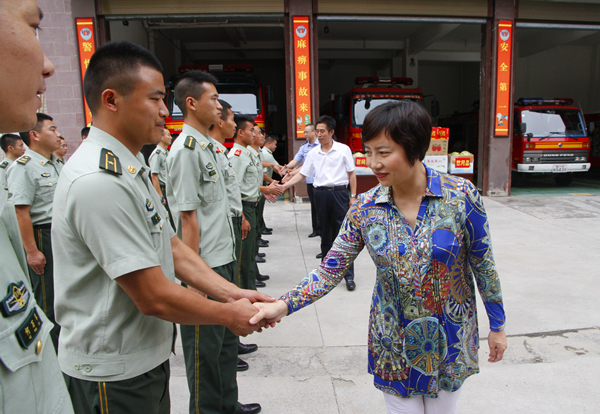 本网讯(王杰)在八一建军节到来之际,受区委书记蔡邦银委托,7月29日下午,区委副书记、区长伏玉琼,区政协主席张晓春,区委副书记罗凌云等四大班子领导先后深入区人武部、区消防大队和驻朝某部,看望慰问广大消防战士和部队官兵,为他们送去节日祝福和问候,感谢他们为朝天经济社会发展作出的突出贡献。