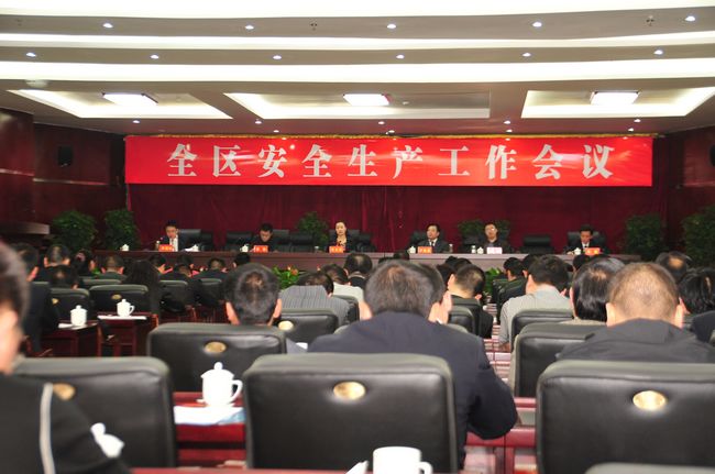当天下午2:30,全区安全生产会议在区文化中心召开,会议总结了2011年度安全生产工作,全面分析了当前安全形势,重点安排部署了2012年度安全生产工作。