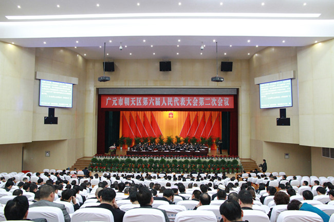 上午八点三十分,在庄严的国歌声中,朝天区第六届人民代表大会第二次会议隆重开幕。