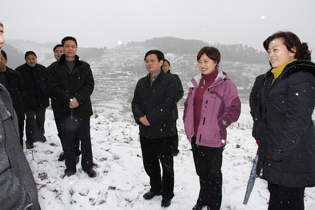 空中飘着大雪,路上积雪很厚。蔡邦银、伏玉琼、梁黎、贾光升等区四大班子领导冒着严寒先后赴沙河镇、鱼洞乡、临溪乡、曾家镇、平溪乡,详细了解了2012现代农业示范园区以及生态小康新村建设规划情况。