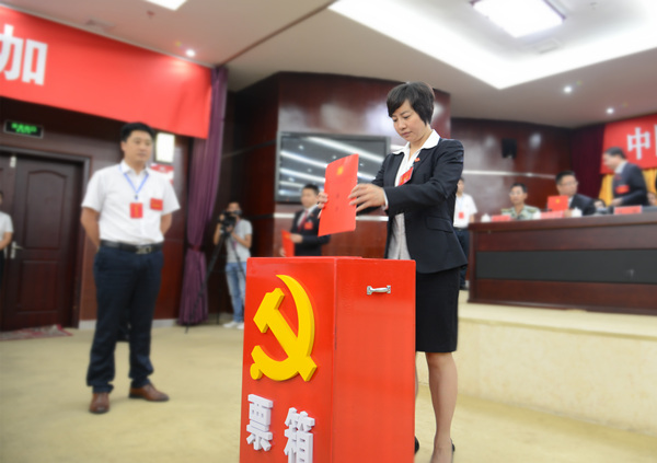 图为代表们正在投票