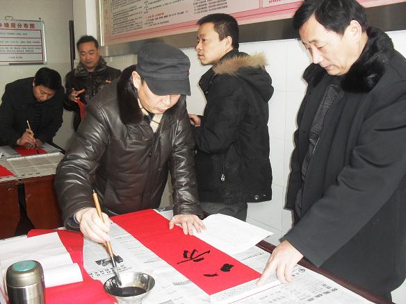春节将至,为给文安乡村民送上一份新春礼物,广元市书法协会副会长、广元中学副校长杜光亚主动放弃休息时间,与两位老师一道为村民书写春联。