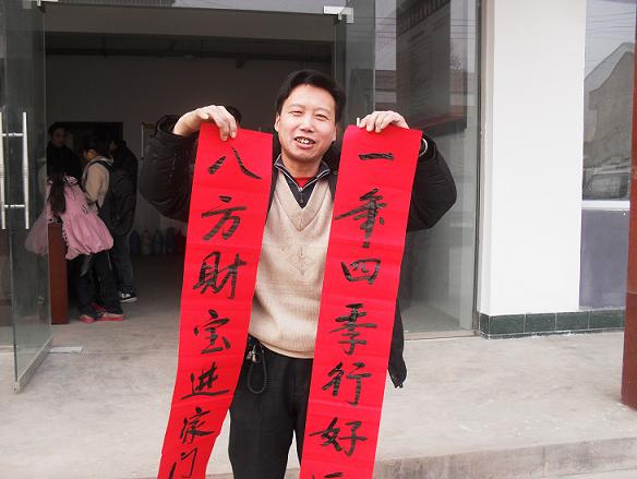 一旁认真观看杜校长写字的村民解国方忍不住激动地说:“这春联字写得就是好,内容也选得好,过年不用买春联啰!”