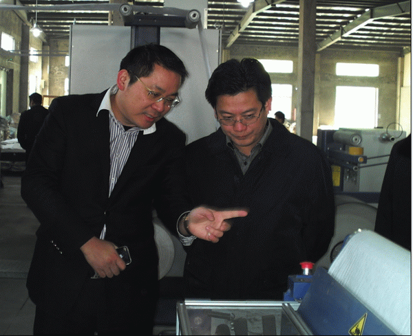 蔡邦银在天津华今集团考察复膜塑编布项目