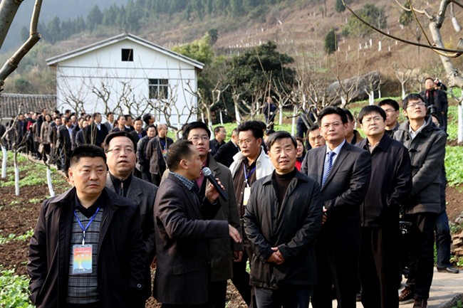 本网讯:12月21日,参加全省林业产业发展现场会的与会代表,在省委常委、省委农工委主任李昌平,市委副书记、市长马华,市委副书记王菲,副市长陈凯的带领下,先后赴我区沙河镇岳家村核桃示范基地、沙河镇三湾核桃采穗圃、朝天镇双河村核桃示范基地、中子现代林业(核桃)示范园区参观考察。