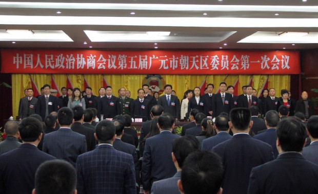 9点正,政协第五届广元市朝天区委员会第一次会议在雄壮的国歌声中隆重开幕。