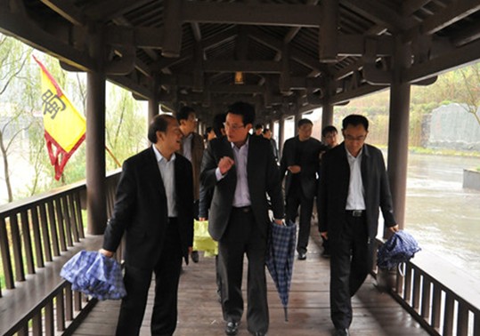 蔡邦银向考察团介绍说,“5.12”特大地震,使明月峡景区遭受毁灭性打击。震后,区委、区政府打捆使用灾后重建资金,投入1.7亿元把明月峡打造成国家4A级旅游景区。在景区建设规划上坚持先规划后开发,无规划不开发。围绕生态、人文型旅游发展定位,充分展现独具特色的蜀道文化,做到“人无我有,人有我优,人优我特”。其中,蜀风广场的设计、游客中心建筑风格的确定、危岩的加固治理方案、古栈道的修复方案,经过省市专家数十次的反复修改;上海同济大学知名专家帮助完成了《明月峡景区建设性详细规划》,并顺利通过专家评审;聘请了省林业勘探设计院编制完成了施工设计,聘请省内外著名专家对景区整体风格塑造、景区雕塑等建设项目进行了规划设计。
