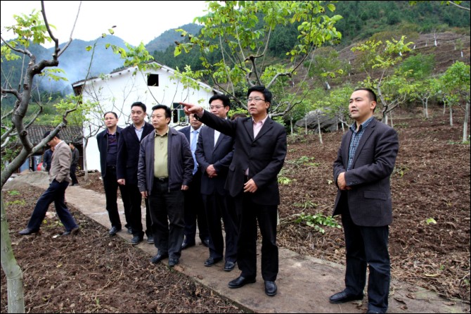 深秋时节,“川北门户”朝天区生机盎然。修枝、刷干、栽新树苗……核桃树种植园里,果农们忙得热火朝天。进农户,看基地,马华先后来到沙河镇岳家村核桃丰产示范基地、沙河镇三湾村朝天核桃采穗圃、中子现代林业示范园区核心区,通过听汇报、实地察看的方式调查了解朝天核桃产业发展情况。