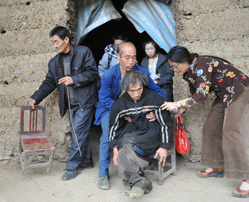 “等路修好了,我要带你到山外走走”——这是邱子文对残疾人邱潘元许下的诺言。邱潘元今年50岁,从小肢残,生活不能自理,在家和弟弟相依为命,加上没有经济来源,两个人的生活都是问题。多年来,邱子文主动挑起了照顾他的担子,帮他背水打柴,照顾生活起居,几十年如一日。为了便于照顾他,邱子文把兄弟两个从相距1公里远的山梁上搬到了山下,在紧挨着自家院子的地方为他们盖起了新房,每天都要去看望一次。去年10月份,为了给邱潘元办残疾证照相,邱子文凌晨五点就出发,用当地背石头的木架把他背到了镇上,然后又一步一步把他背回去。夜里回到家放下邱潘元时,邱子文双肩上已烙下深深地血印。