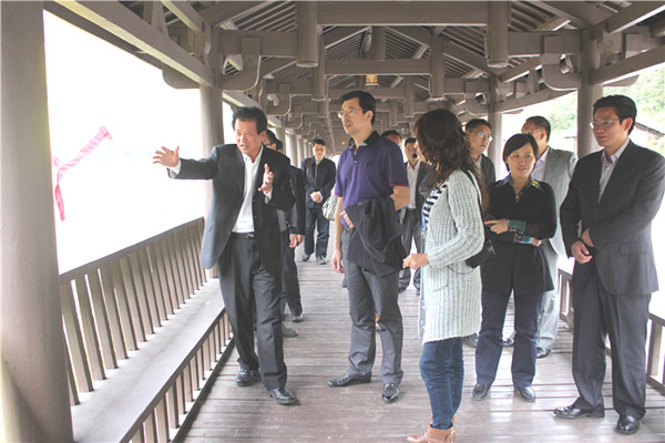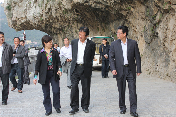 10月15,嘉兴市委常委、秘书长孙贤龙一行,在市委常委、宣传部长王华蓉,区委书记蔡邦银的陪同下赴我区明月峡参观考察。