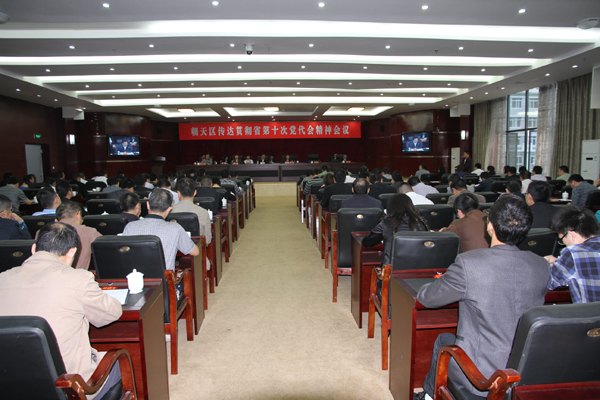 5月23日,我区召开专题会议传达贯彻省第十次党代会精神。区委书记蔡邦银传达省第十次党代会精神并作重要讲话,区委副书记、区长伏玉琼主持会议,梁黎、卢达昌等区四大班子副县级以上实职领导干部参加会议。会议要求,各级党组织和全区共产党员要深刻领会省第十次党代会精神,切实把思想和行动统一到省第十次党代会精神上来,迅速掀起学习宣传贯彻热潮,以省第十次党代会精神为指引,加快朝天振兴发展和全面小康进程,为建设生态文明繁荣和谐新朝天而努力奋斗。