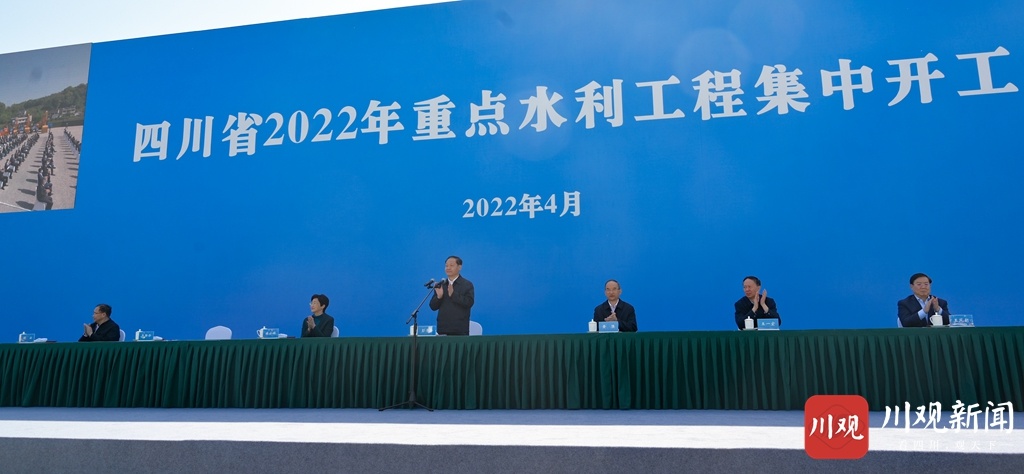 4月20日上午,四川省2022年重点水利工程集中开工。省委书记彭清华宣布集中开工,省委副书记、省长黄强讲话。