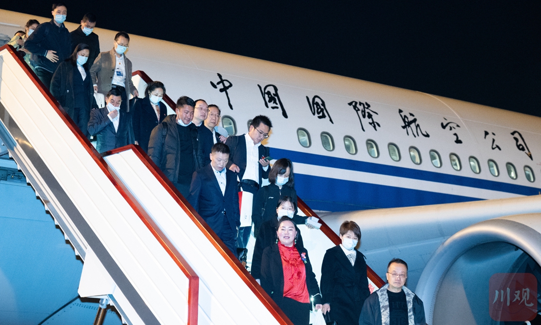 3月13日晚,出席十四届全国人大一次会议的四川代表团代表在圆满完成大会各项议程后,乘机返川。