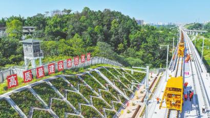 本报讯(陈俊伶 四川日报全媒体记者 王眉灵 范芮菱)9月6日上午,在泸州市冯湾特大桥施工现场,随着第一组500米长的钢轨稳稳落下,重庆至昆明高速铁路重庆至宜宾段(简称“渝昆高铁川渝段”)全面进入铺轨阶段。