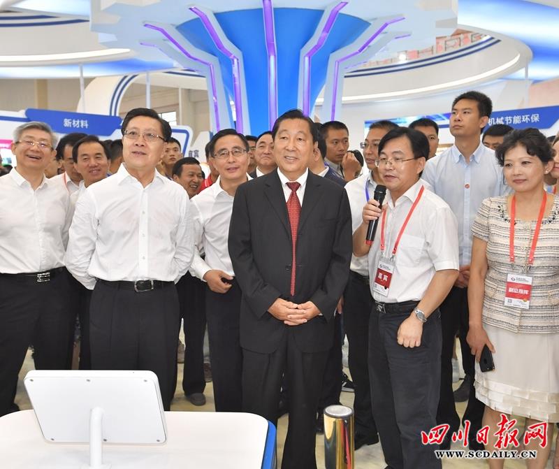 9月7日,全国政协副主席、民革中央常务副主席齐续春,四川省委书记王东明,省政协主席柯尊平及国内外嘉宾参观科博会展场。