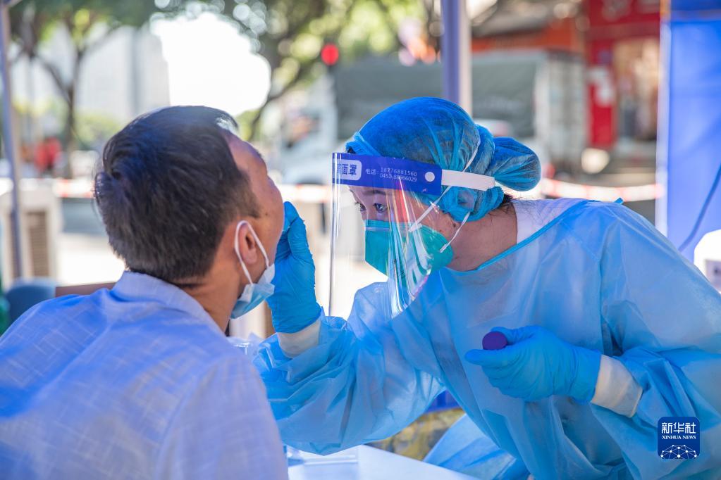 居民在重庆市两江新区人和街道邢家桥社区采样点接受核酸检测(2022年8月24日摄)。新华社记者 黄伟 摄
