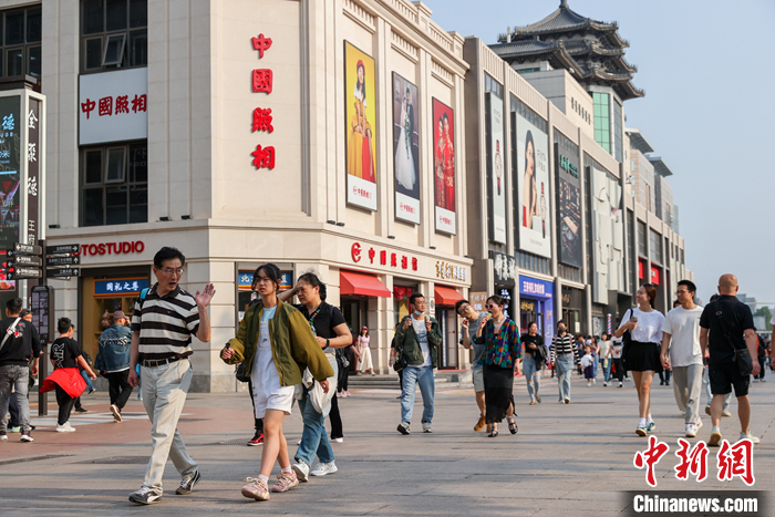 5月3日,游客在北京王府井步行街游览购物。当日,中国文化和旅游部发布消息,2023年“五一”假期,文化和旅游行业复苏势头强劲,全国假日市场平稳有序。中新社记者 贾天勇 摄